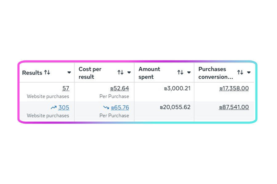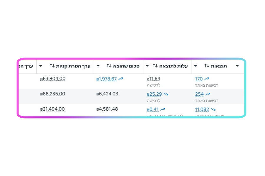 אנו מבצעים קידומים אך ורק מחשבונות המודעות הרשומים על שמכם כך ששום פרט לא נחסך מכם: חשיפה, לידים, עלויות, ROAS ובעצם כל נתון אחר שתרצו.